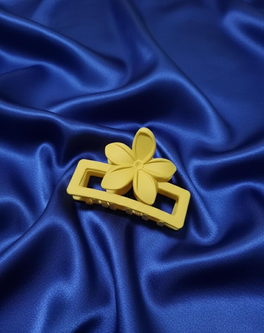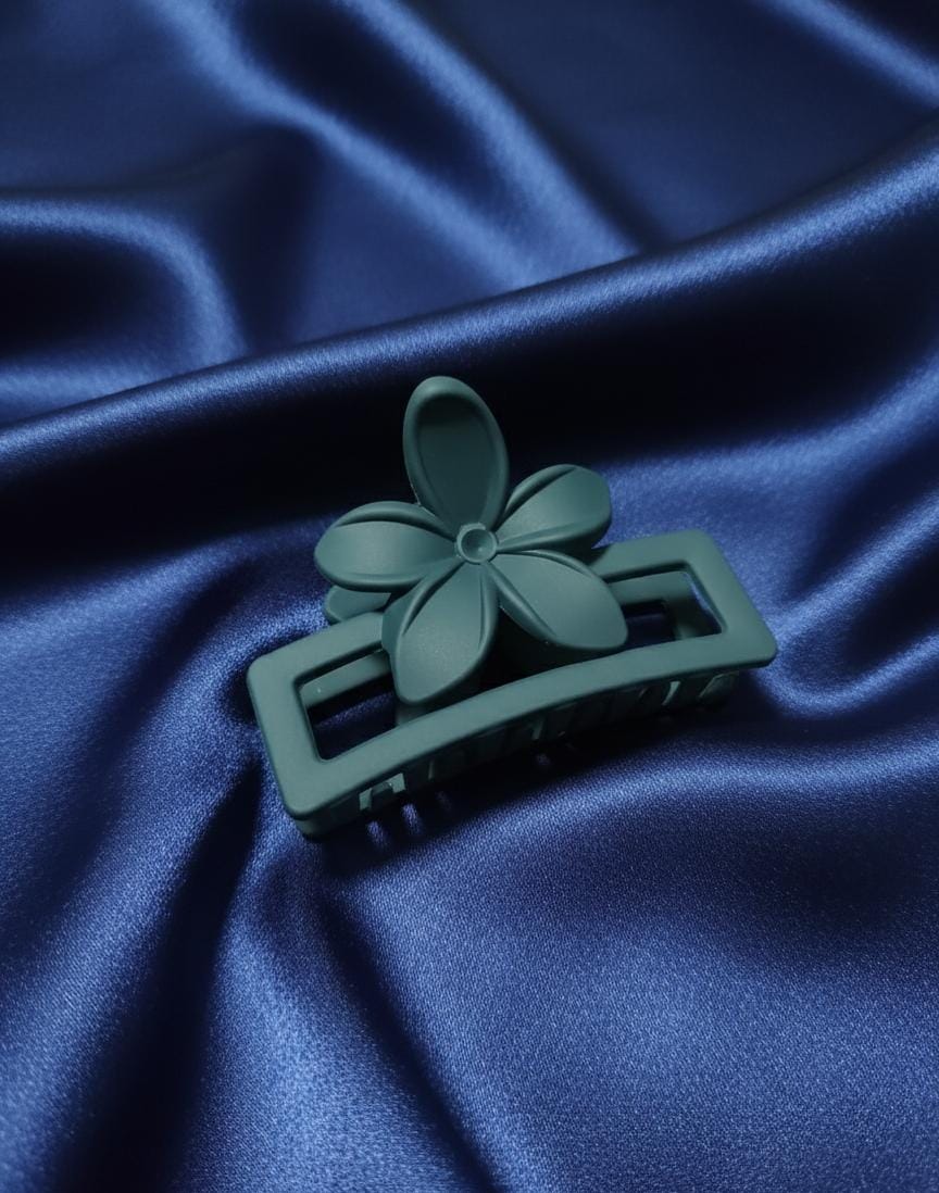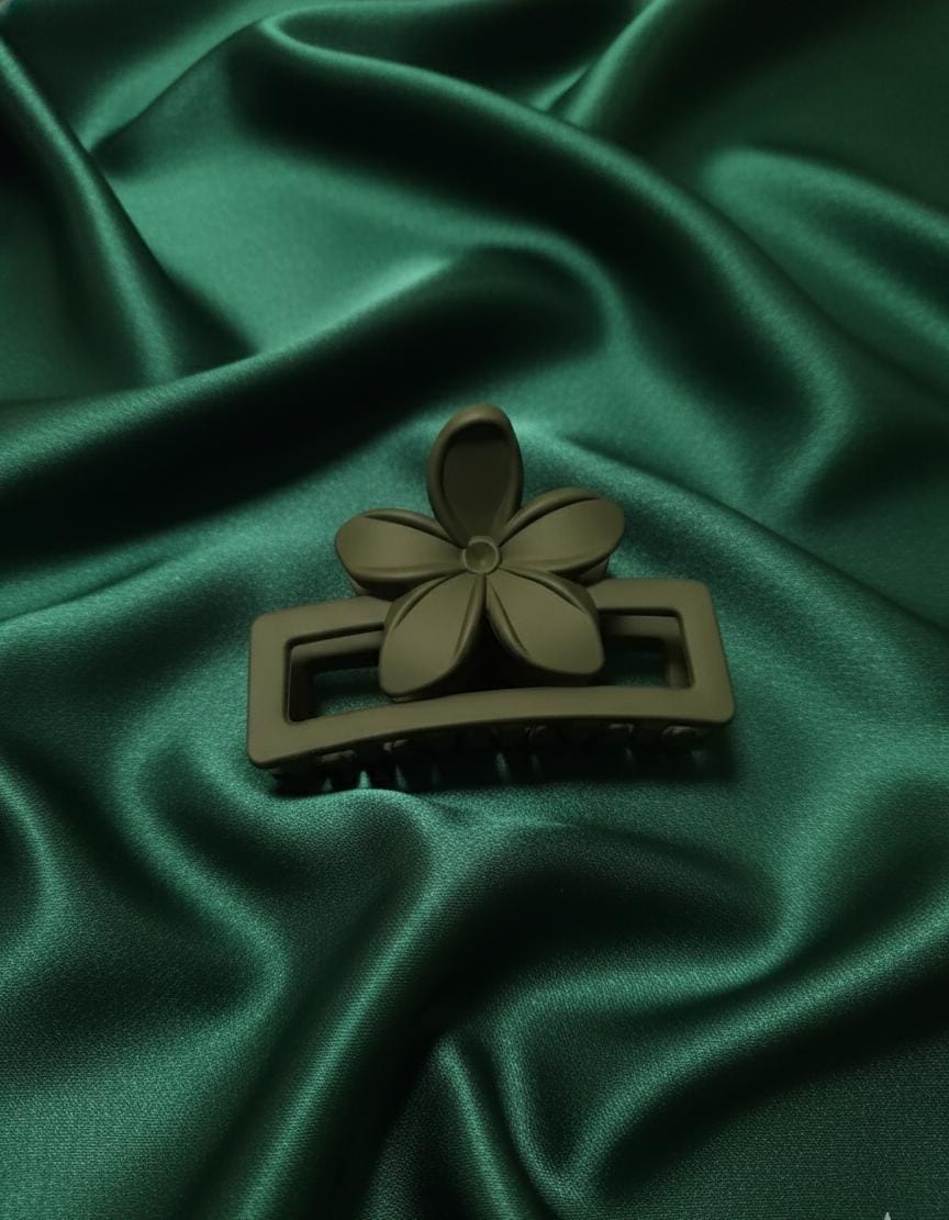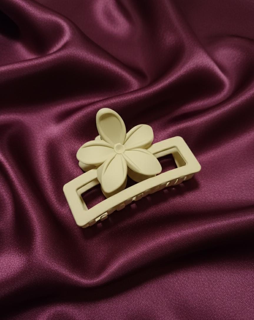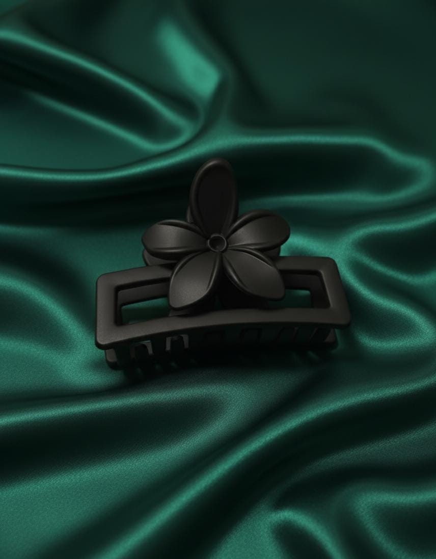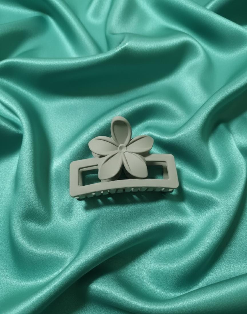 | Design | Minimalist Flower/Petal Accent. The clip features a simple, flat flower/petal shape mounted on top of a rectangular claw base. This is a subtle and modern take on the floral design. |