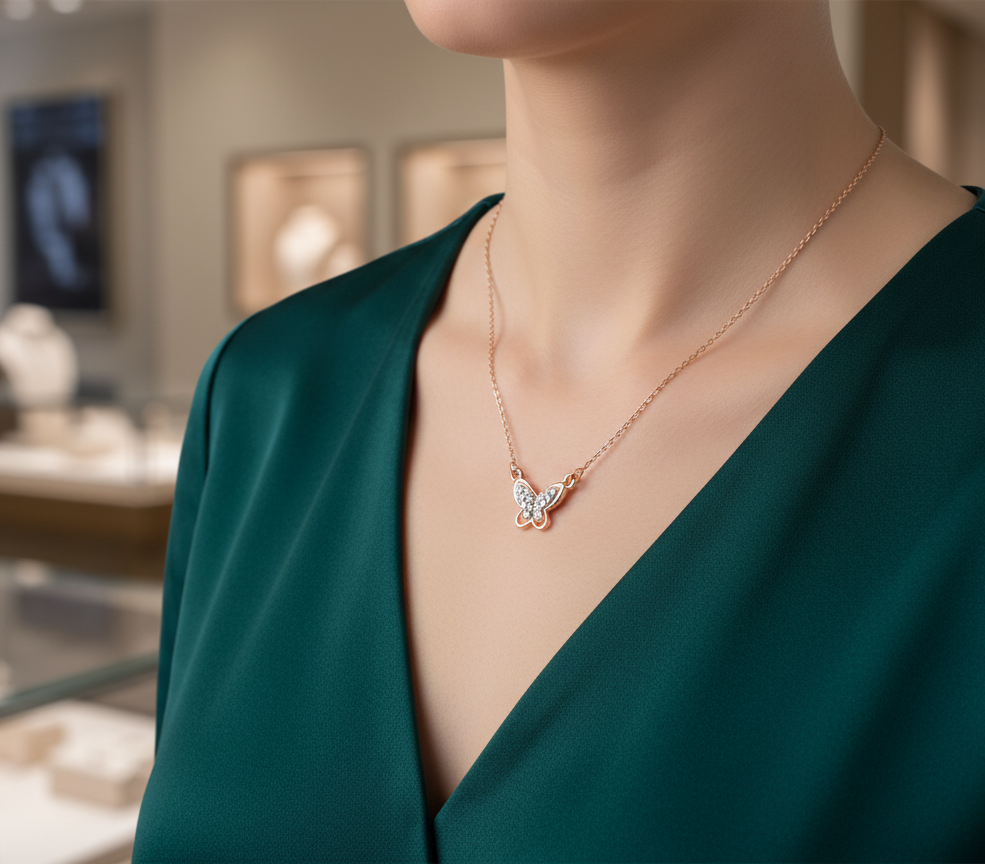Brilliant Pavé Setting: The entire butterfly pendant is studded with high-quality micro-pavé Cubic Zirconia (CZ) stones for maximum sparkle.